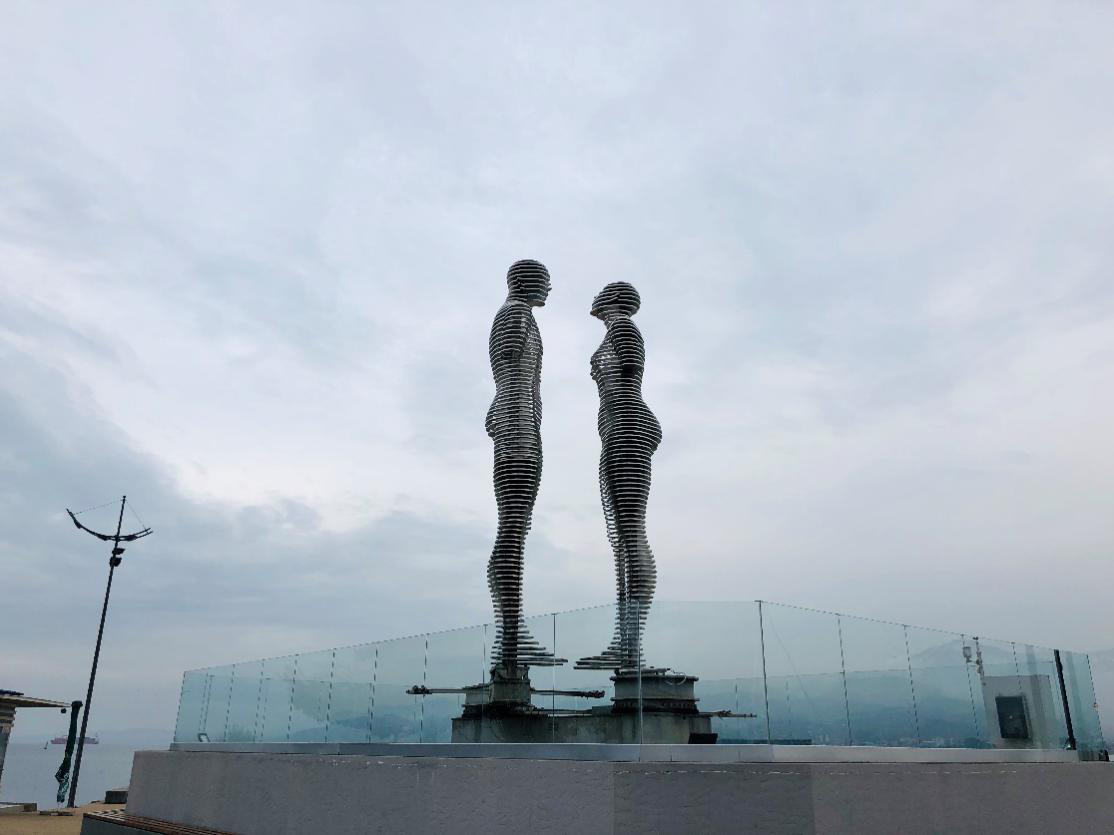 在海滨的摩天轮旁,名为“阿里和尼诺”的两座雕塑处于永恒的运动之中,从初识相遇、互相吸引,慢慢靠近,到相互亲吻和拥抱,最后却又穿过彼此的身体,慢慢相背而去。一遍又一遍周而复始,就这样不停的分分合合,浪漫却又伤感,像极了傍晚的黑海。来到这里,见证他们的故事。如果天气晴好,还能与他们相伴看一场黑海上的夕阳。