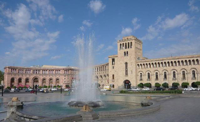 共和广场位于埃里温的市中心,原名列宁广场,又称马赛克广场。广场周边也是亚美尼亚国家核心建筑集中区:东北角是亚美尼亚中央政府合署办公区以及总理府;正北是亚美尼亚国家博物馆、国家画廊、文学艺术博物馆等;西北角是外交部等部委大楼;西南角为万豪下属亚美尼亚酒店;东南方是国家邮电局等部门。大部分建筑都以当地盛产的红、粉、白各色岩石建造,粉红色为主色调。亚美尼亚国庆阅兵就在这个广场举行。